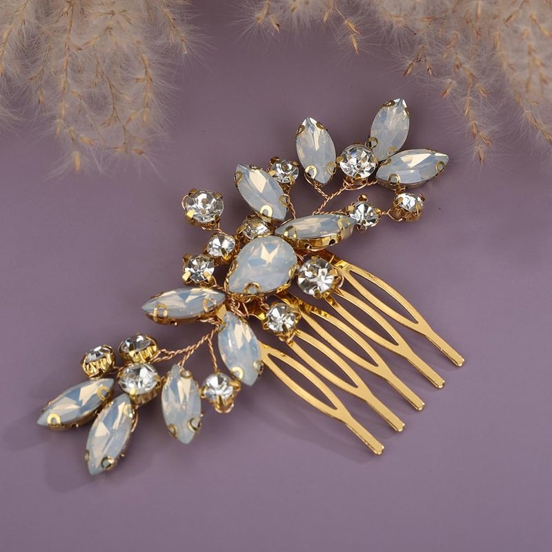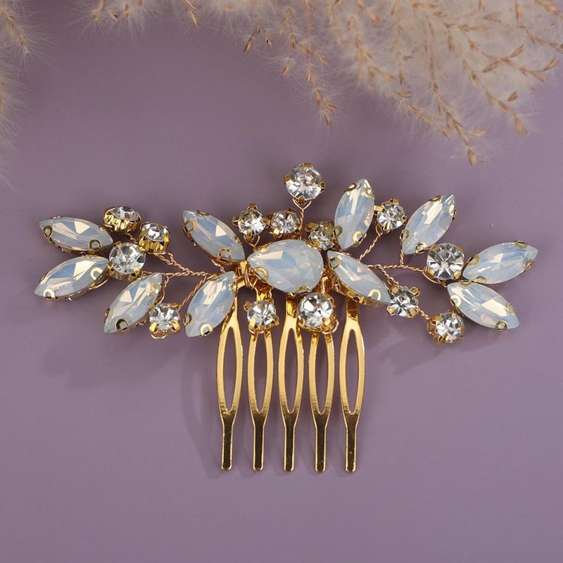 Rumtock Sparkle Opal Crystal Gold Hair Comb for Wedding Brides Women Handmade Cute Hair Accessories Special Occasion(Opal)