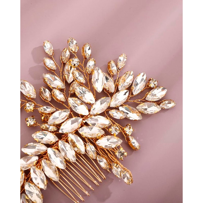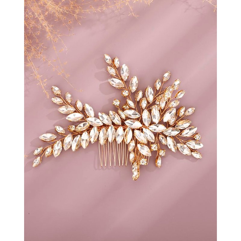Rumtock Sparkle Rhinestones Beads Gold Hair Comb for Women Girls Wedding Bridal Side Headpiece Jewelry for Special Occasion (Gold)
