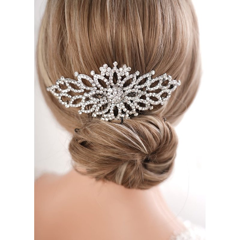 Rumtock Vintage Bohemian Silver Hair Comb Rhinestones Beaded Stunny Hair Jewelry for Wedding Brides Bridesmaid Women Girls Speical Occasion Hair Accessories