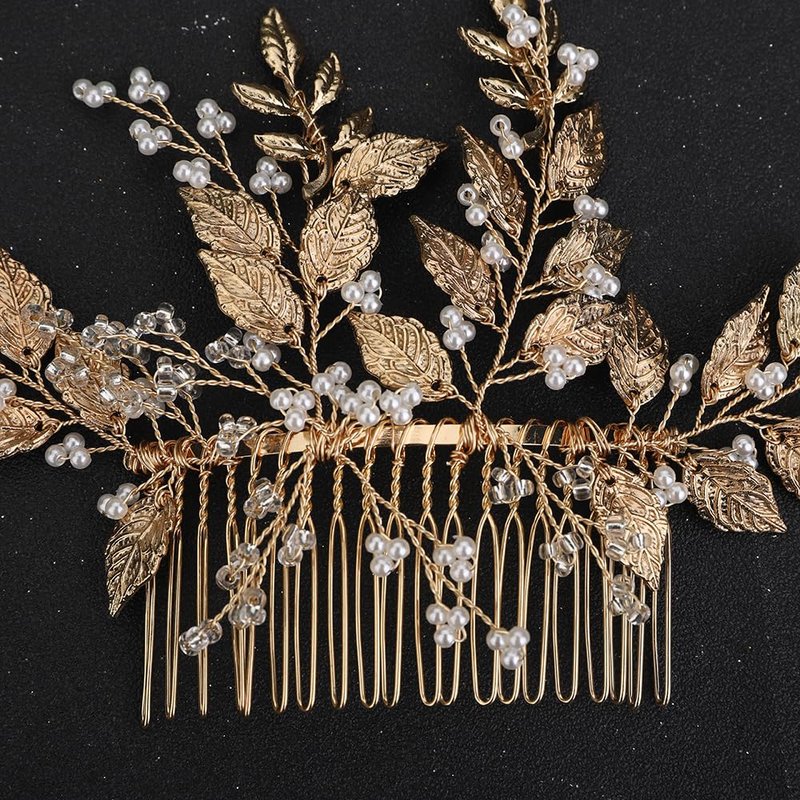 Rumtock Vintage Gold Leaves Ball Beads Hair Comb Side Headpiece for Wedding Brides Women Girls Banquet Festival Jewelry (Gold)
