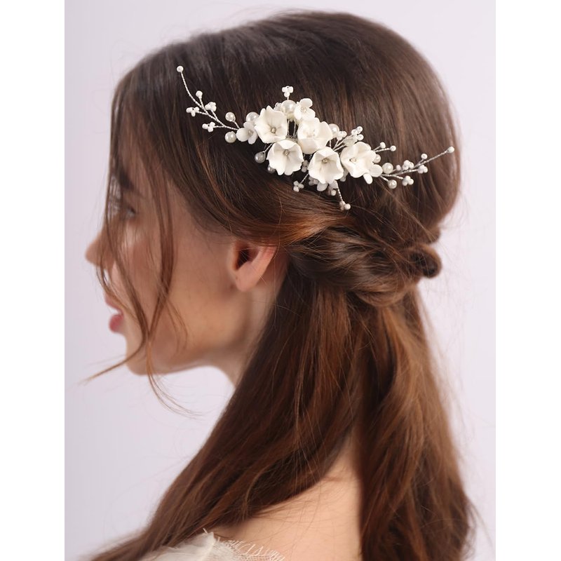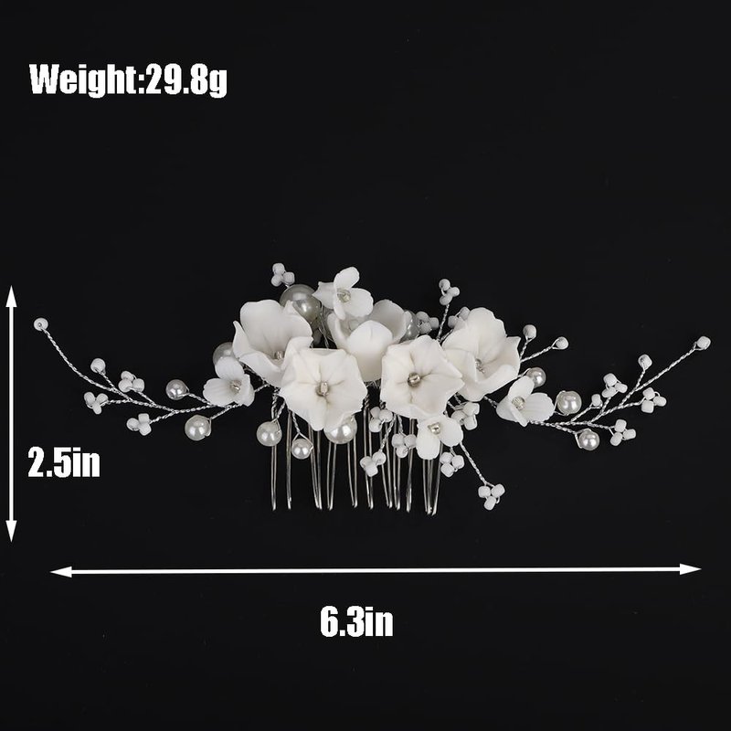 Rumtock White Flower Beads Hair Comb Side Headpiece for Wedding Brides Women Hair Accessories
