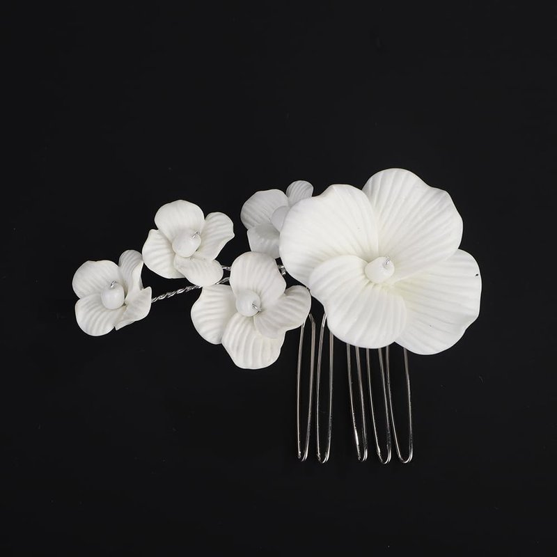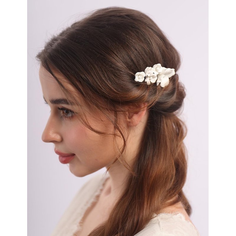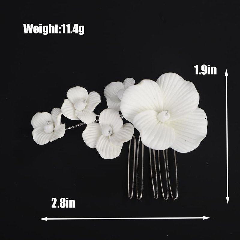 Rumtock White Flower Hair Comb for Wedding Brides Cute Silver Hair Piece for Women Special Occasion