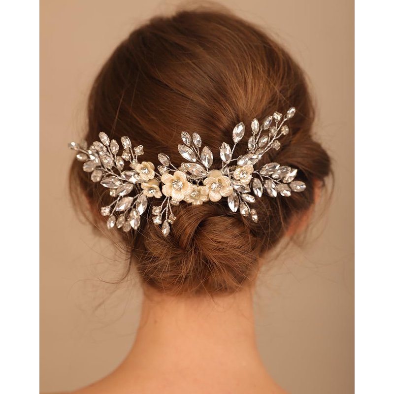 Rumtock White Flower Hair Comb for Wedding Brides Women Hair Piece Jewelry Handmade Boho Hair Accessories (Silver)