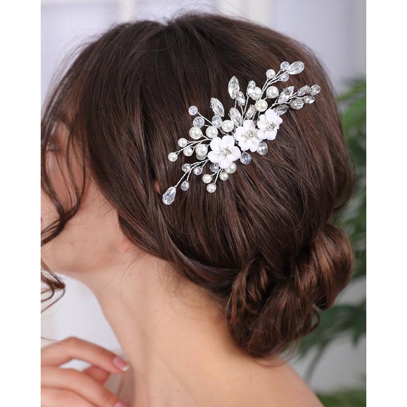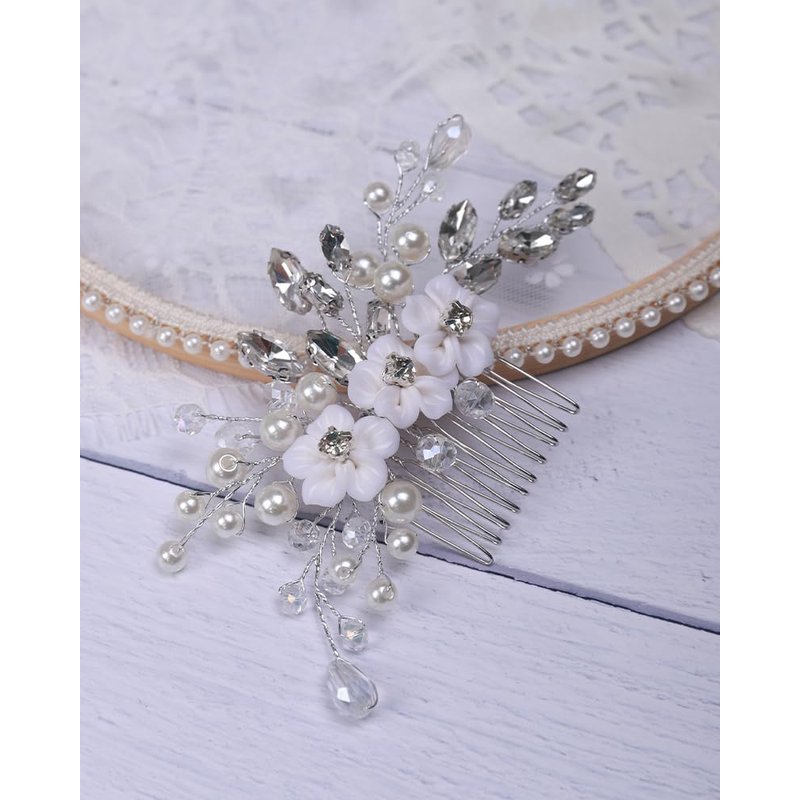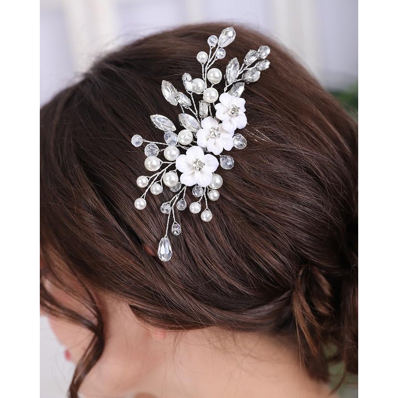 Rumtock White Flower Pearl Hair Comb Sparkle Crystal Hair Accessories for Wedding Brides Bridesmaid Flower Girls Side Hair Piece