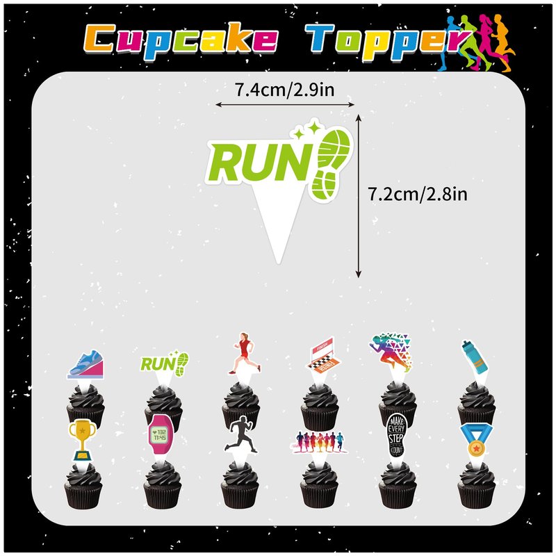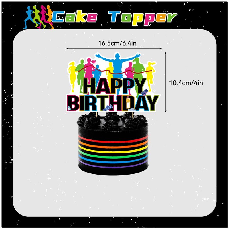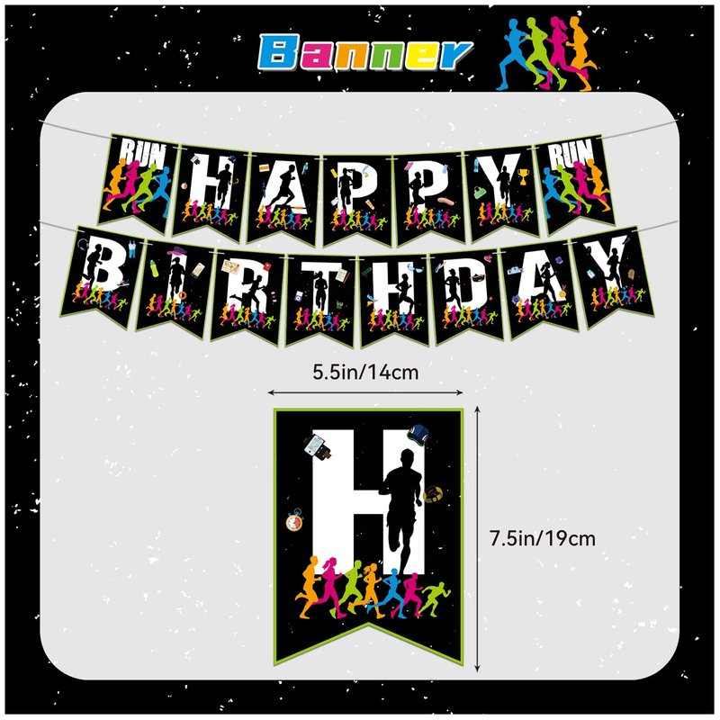 - Running Birthday Party Decorations Pack: Our package contains 1 running "HAPPY BIRTHDAY" banner, 1 running "HAPPY BIRTHDAY" cake topper, 12 running cupcake toppers, 18 running latex balloons, 1 ribbon.
