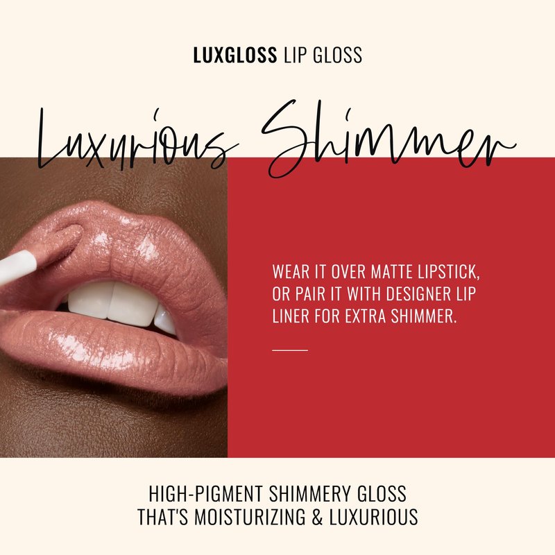 - HIGH-PIGMENT SHIMMER LIP GLOSS: LuxGloss is a creamy high-pigment shimmery lip gloss that delivers a shine that transitions into a gorgeous shimmer with a non-sticky finish. ‘Strike a Pose’ is a soft muted-rose lip color that smells like a sweet vanilla bean–scented treat.
