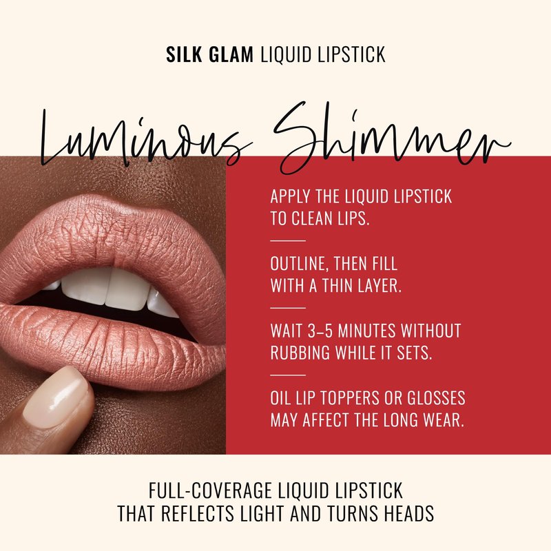 - LONG WEAR LIQUID LIPSTICK: Silk Glam Liquid Lipstick is a silky, lasting long wear lipstick infused with luminous shimmer pigments to subtly reflect light. Our peachy-nude ‘Paparazzi’, golden-nude ‘Couture’, and medium-nude ‘Sex Symbol’ frosted lipstick shades offer a luxe selection and a full-coverage formula.