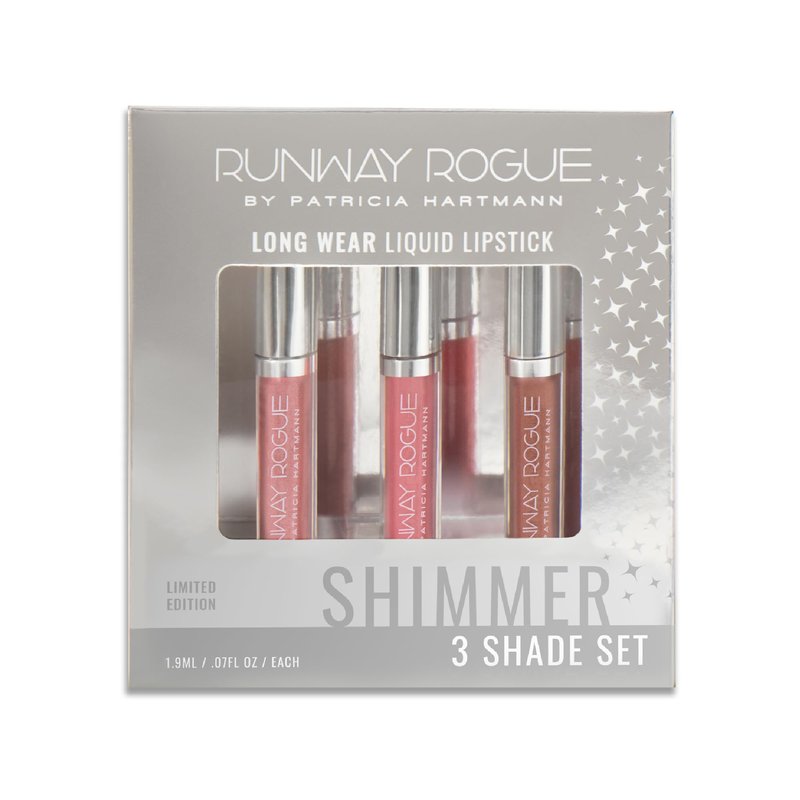 - A SHIMMERY LIQUID LIPSTICK TRIFECTA: Try 3 richly pigmented shimmer shades from our Pearl Glam and Silk Glam long wear liquid lipstick collections in 1 beautiful gift set. Explore a soft-focus finish in our light-catching pink/nude ‘Soft Box’, our frosted blush rosy-pink ‘Jet Set’, and our frosted nude ‘Couture’ with pale peachy-gold tones.