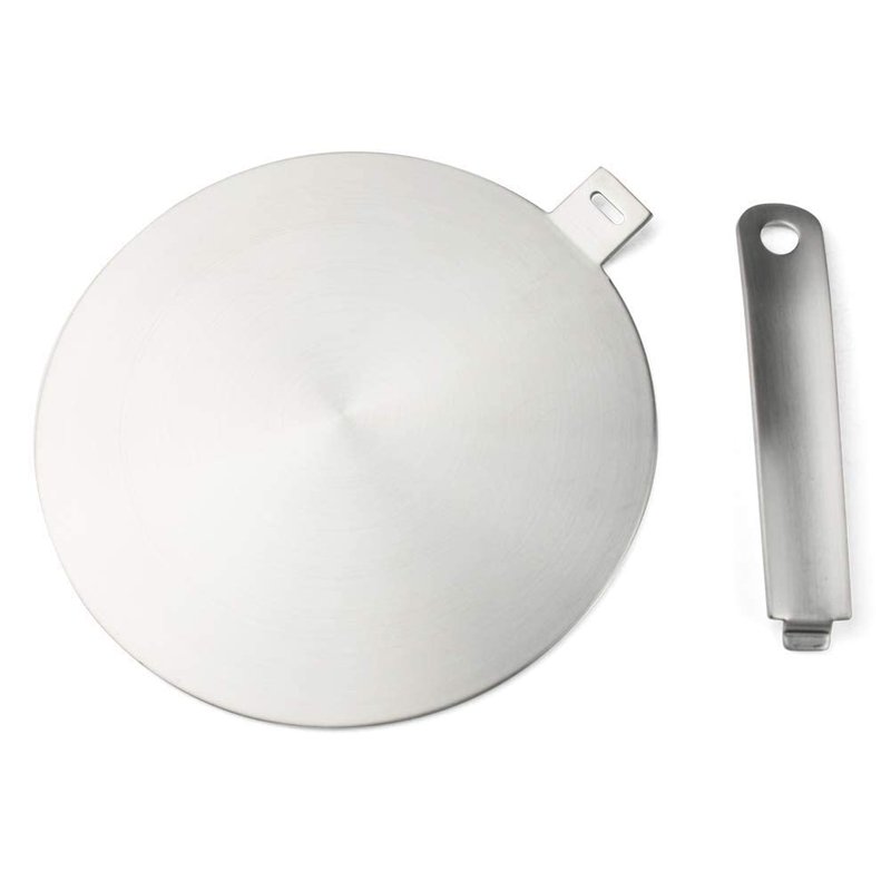 RUNZI 9.45inch Heat Diffuser Stainless Steel Induction Diffuser Plate for Electric Gas Stove Glass Induction Cooktop Heat Diffuser WITH removable handle 24CM