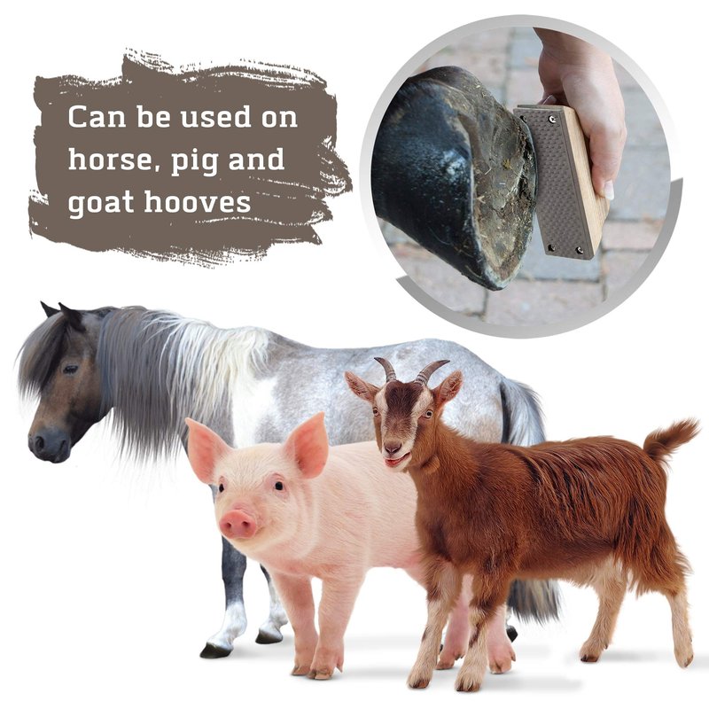 - EASY TO USE: Grip hoof between knees or between a hand and knee for stability and remove dirt from hoof; Hold wooden handle of rasp and lay the rasp file flush on the outer hoof; Push forward to file flat; Do not remove more than half of the hoof thickness and stay parallel with original hoof grow line; To round hoof, lower top side of the rasp toward the sole; push the rasp forward while lowering the top side to easily round off the hoof; Always wear safety gloves and glasses