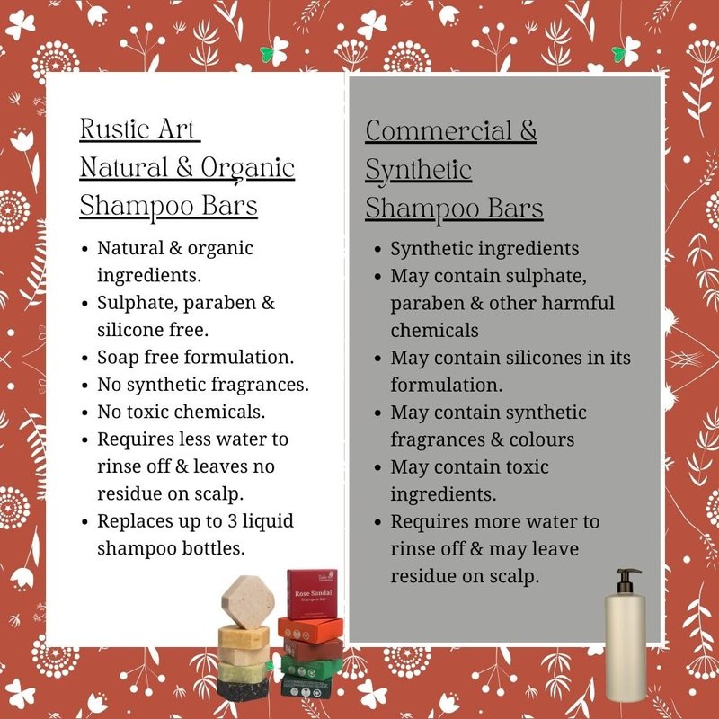 - Sustainable & Gentle: This 100% soap-free, vegan bar is biodegradable and free of harsh chemicals like sulfates, parabens, and silicones.The bar contains no synthetic colours or fragrances. It is pH balanced for hair wash. It can be used post oil massage. Suitable for all hair types. Water efficient: requires less water to rinse off, does not add toxins to rinsed off water. One hair cleansing bar replaces at least 3 shampoo bottles.