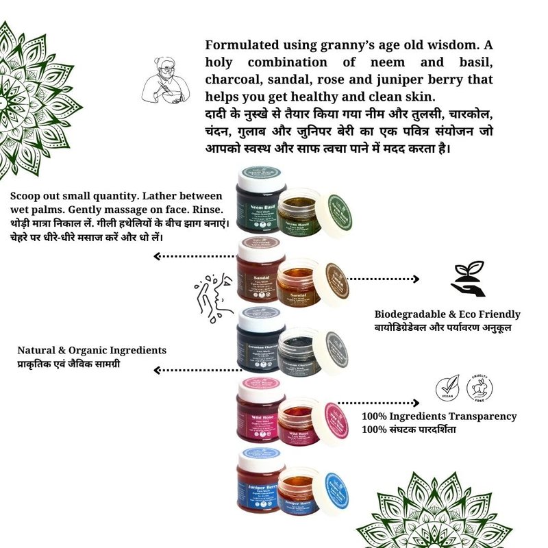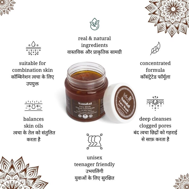 - This face wash is a unique concentrated formula made by the women of rural India with holy, organic and natural ingredients like Sandal, Turmeric and various butters known for their skin brightening and complexion improving properties. PERFECT FOR: All, and combination skin types. This versatile face wash addresses the specific needs of all skin types while providing the targeted care needed for combination skin.