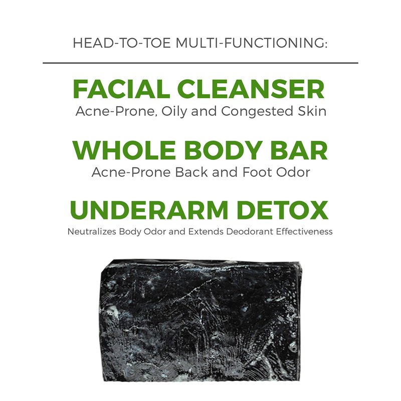 - DETOX: Natural soap bar fortified with powerful magnet-like properties of Activated Charcoal and mineral-rich Kaolin clay idea for face, body and underarm detox.