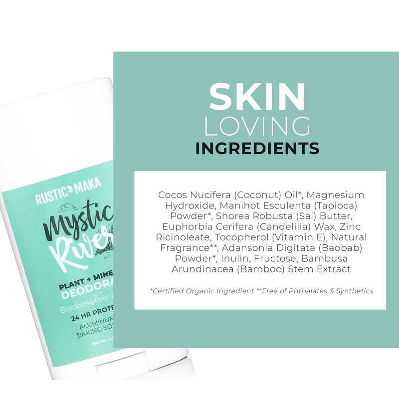 Rustic MAKA Natural Deodorant for Women and Men, Mystic River, Prebiotic, Cruelty-Free, Free of Aluminum and Parabens, Continuous Odor Control
