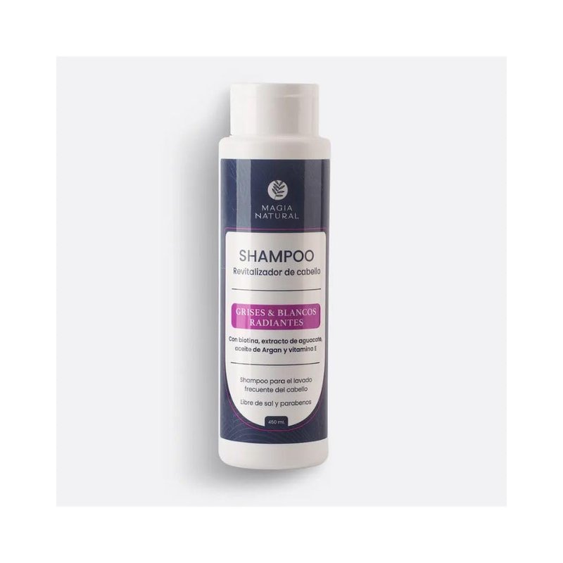 - Explora la especializada fórmula del Shampoo para Canas, diseñado específicamente para cabellos grises y blancos. Enriquecido con biotina, aguacate, argán y vitamina E, este shampoo se convierte en la elección ideal para realzar y cuidar la belleza natural de tu cabello plateado. La aplicación es sencilla y efectiva.