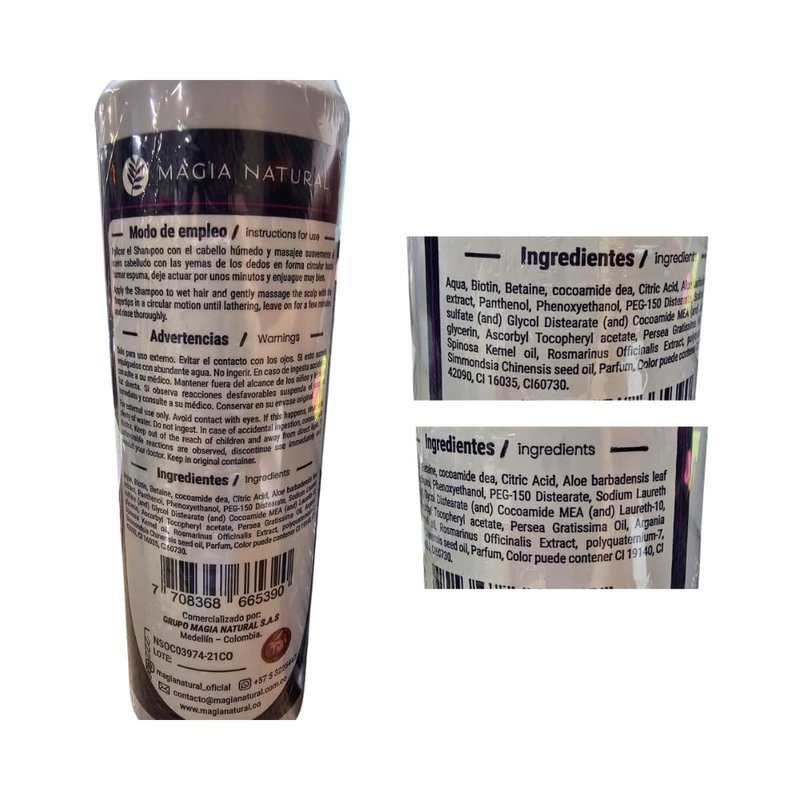 Explora la especializada fórmula del Shampoo para Canas, diseñado específicamente para cabellos grises y blancos. Enriquecido con biotina, aguacate, argán y vitamina E, este shampoo se convierte en la elección ideal para realzar y cuidar la belleza natural de tu cabello plateado. La aplicación es sencilla y efectiva. Modo de uso: Aplicar de 2 a 3 veces por semana. Aplicar el producto con el cabello húmedo y masajee suavemente el cuero cabelludo con las yemas de los dedos en forma circular hasta formar espuma y dejando actuar por unos minutos. Enjuague y para mejores resultados repita el mismo procedimiento. Beneficios -Para cabello seco a normal -Neutralizar los tonos -Aportando nutrición e hidratación
