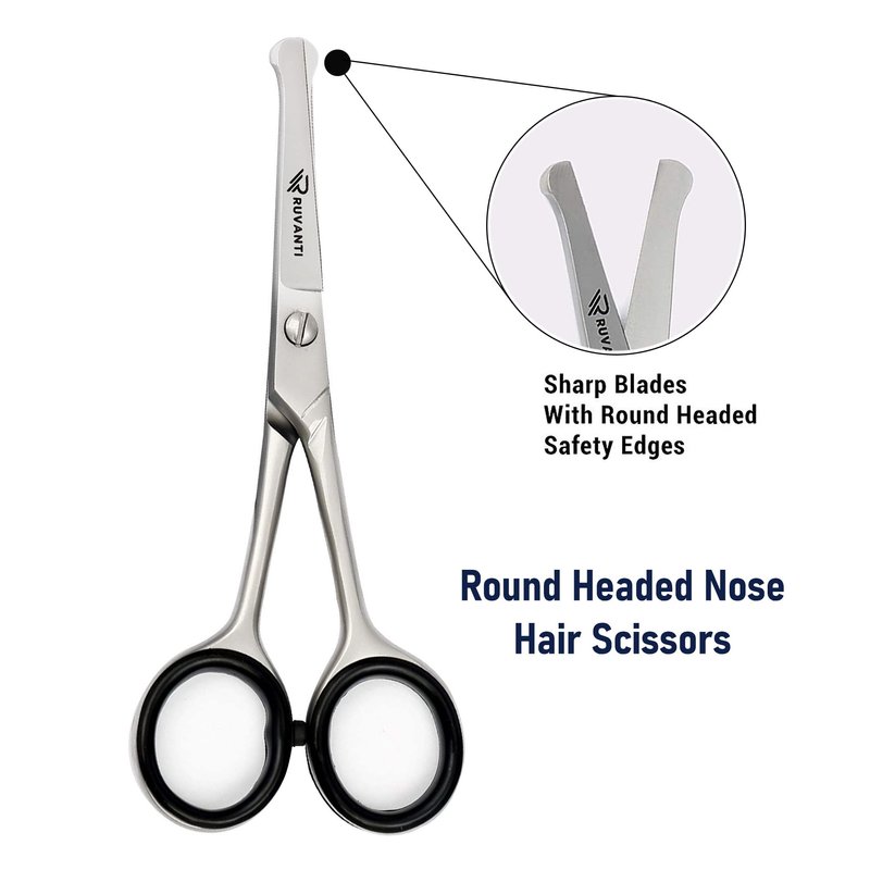 - IDEAL FOR FACIAL / NOSE / MUSTACHES HAIRS: Featuring sharp blades with rounded tip this scissor is good for quick and safe cutting of facial , nose and mustache hairs. The sharp blades are perfectly aligned to allow easy, precise trimming of coarse nose hair scissors for men, facial and mustache hairs without pulling, while rounded tips at the ends ensure ease of use to keep you safe from injuries to the nose or face.