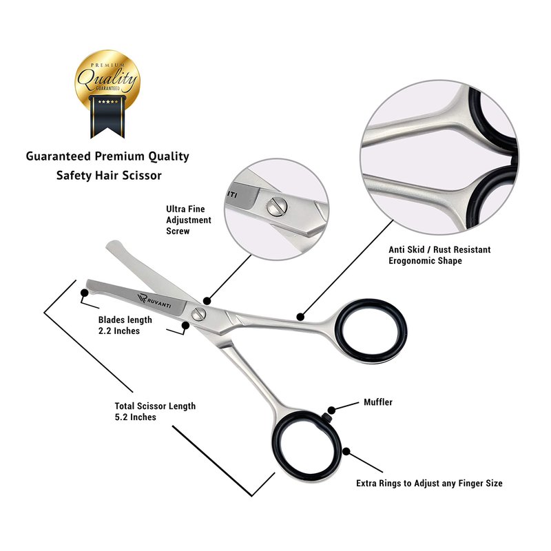 RUVANTI Round Headed Nose Hair Scissors/Safety Scissors for Kids & Infants 5.2" Stainless Steel Baby Scissors/Baby Nail Scissors.Facial Hair Scissors/Beard Trimming Scissor/Mustache Scissor.