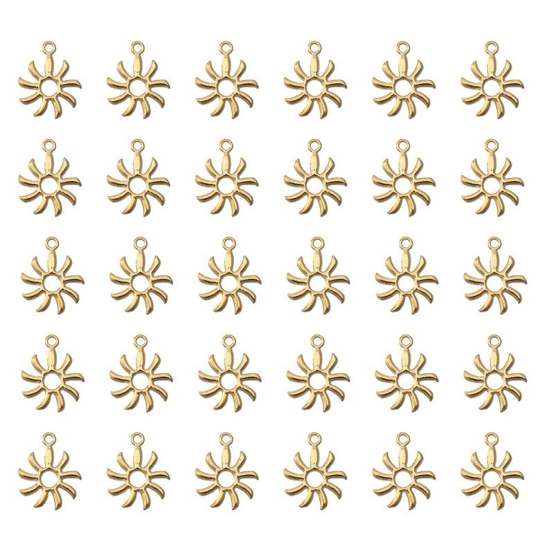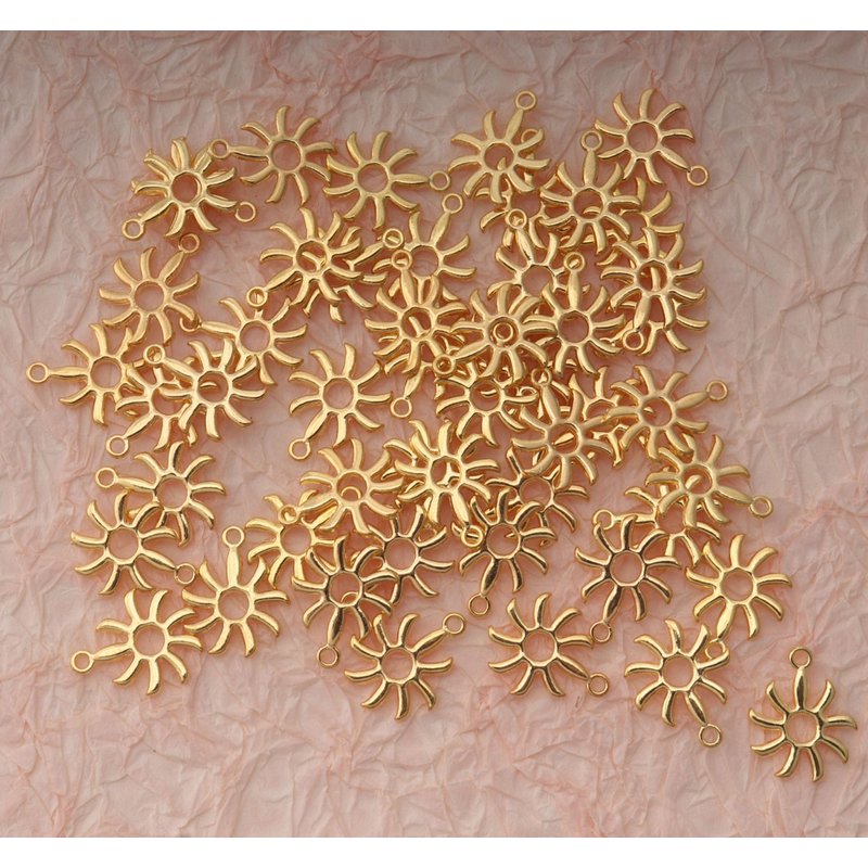 Ruwado sun charms are perfect for making necklaces, bracelets, charm earrings, jewelry pendants, key chains, backpack ornament, room decoration, zipper pull, art design, collection and other DIY projects. Features: Material: metal Size: 1.8 x 1.5 cm Color: gold or silver Quantity: 50 pcs