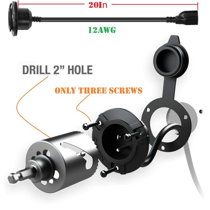 - ⛱ EASY TO INSTALL: Just need a 2-inch drilling hole, simply flush mounted with 3 screws 16" integrated extension cord offers plenty of flexibility for your application, directly connecting the cord to the existing power source