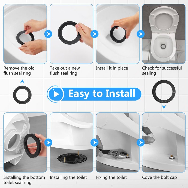 - 🍃Easy to Install: It only take you a few minutes to install. First turn off the water supply, just popped the old seal out and put the new flush ball seal in place ensuring it's seated in fully, secure the toilet using the provided brass bolts, nuts and bolt caps. !Note that the marked side is facing up.