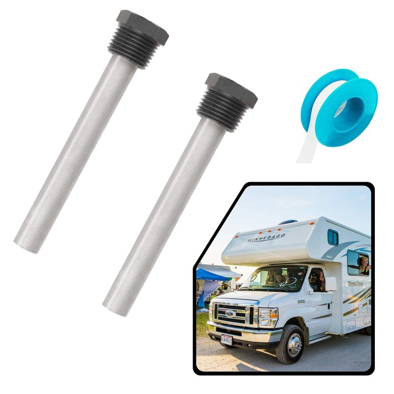 - Pack of 2: Unscrew the anode rod to drain the tank. If the rod is mostly eaten away, replace with a new one. Always keep a spare in your RV.