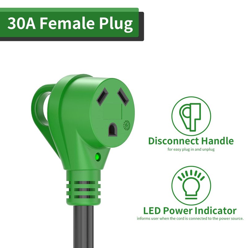- Electrical Rating: 30 Amp 125V/3750W L5-30P locking male plug to TT-30R female receptacle standard connector. Must have if you power 30 Amp RV from generator.