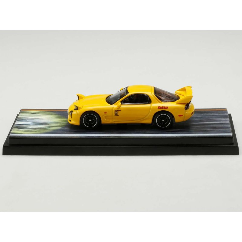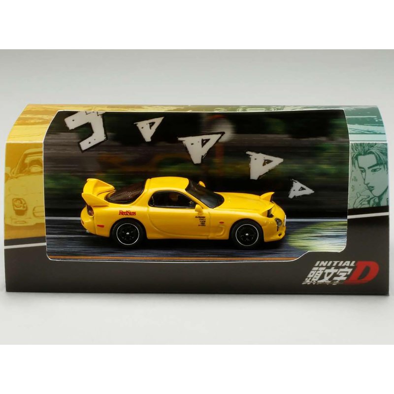 Brand new 1/64 scale diecast model car of RX-7 (FD3S) RHD (Right Hand Drive) Yellow "RedSuns" with Keisuke Takahashi Driver Figure "Initial D" (1995-2013) Manga die cast model car by Hobby Japan HJ643007BDY