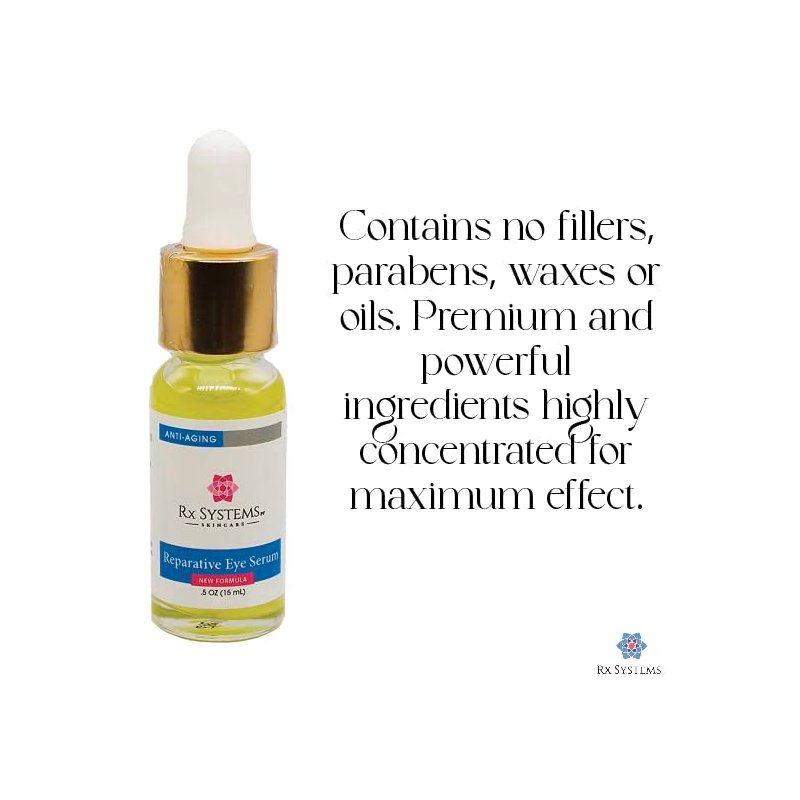 Rx Systems PF Reparative Eye Serum - Vegan Formula with 8 different Peptides, Plant Extracts & No Fillers, Paraben, or Silicone! Eye Cream for Puffiness and Bags Under Eyes - Under Eye Serum