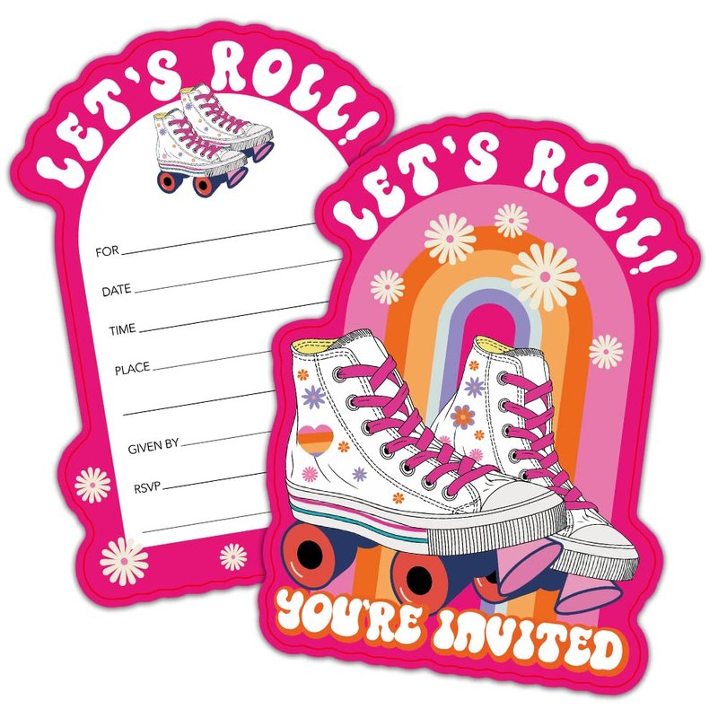 RZHV 15 Pack Roller Skating Shaped Fill-In Party Invitations Cards With Envelopes for Boys & Girls Teens Adults, Funny Boys & Girls Sports Party Baby Shower Birthday Party Invite(Let's Roll)