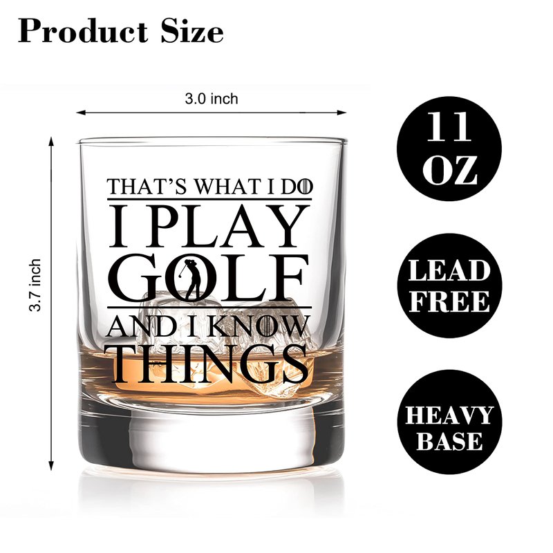 RZHV Thats What I Do I Play Golf And I Know Things Old Fashioned Whiskey Glass, Funny Father's Day Anniversary Birthday Gift for Men Husband Dad Uncle Grandpa Friends Coworkers Golf Lover