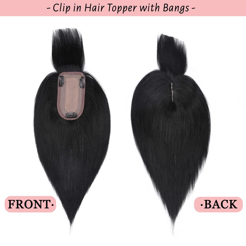 - Stylish Bangs : Clip in hair topper with wispy bangs can decently solve your receding hairline, grey hairline or thinning hair problem. Cut or curl the bangs to any style your like to fit your face. Suitable for covering the top and two sides, not suit for people who want a thick back coverage