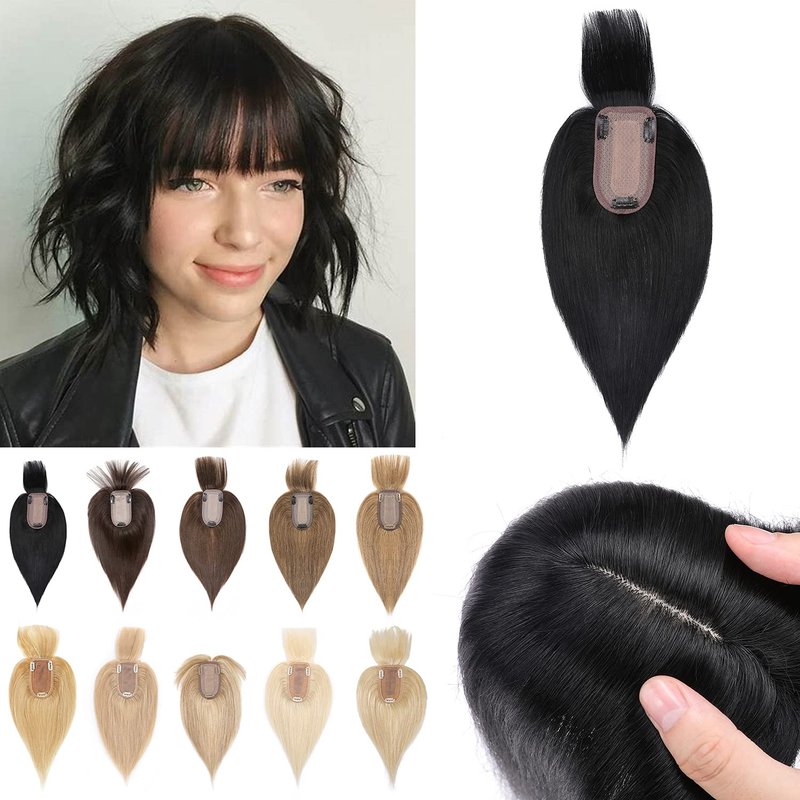 - Real Human Hair : Soft and smooth real Human Hair can blend very well with your existing hair. Unlike synthetic hair, our human hair topper with bangs is perfect and durable for daily use on good care. Long service life up to couples of months can provide you the most natural and decent look