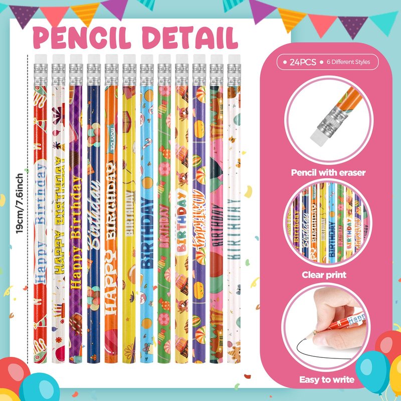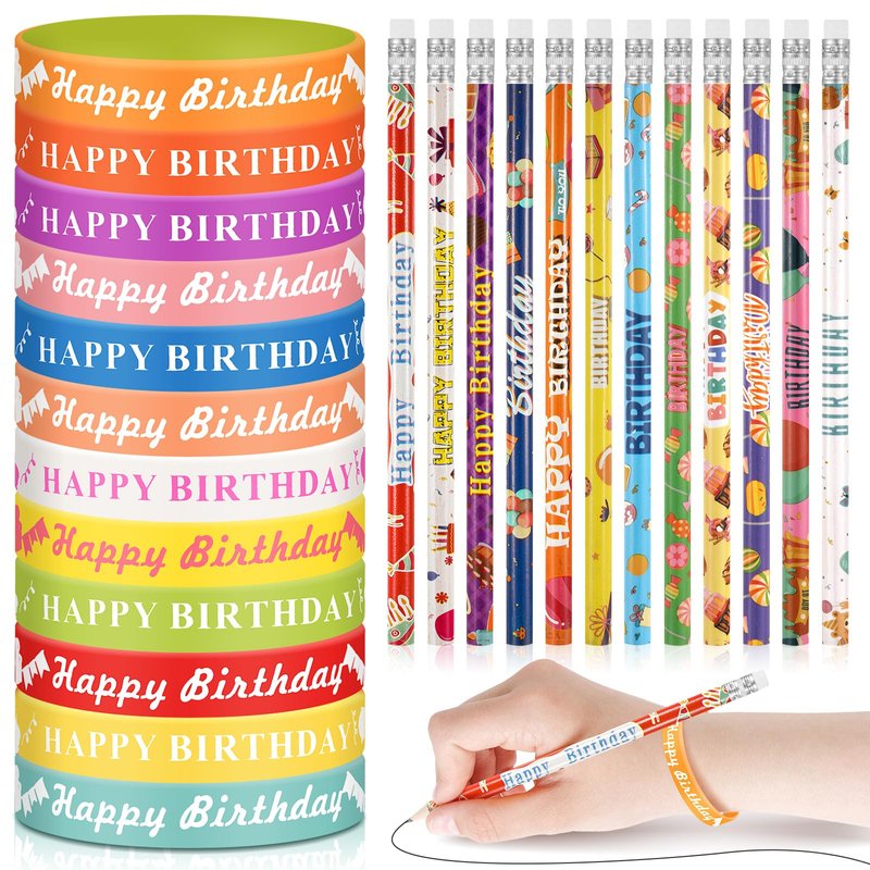 - Birthday Party Gift Set: you will receive 24 pieces of happy birthday pencils in 12 styles and 24 pieces of happy birthday bracelets in 6 styles; Sufficient quantity and different patterns will meet your different using and replacement demands, you can also share them with your family and friends