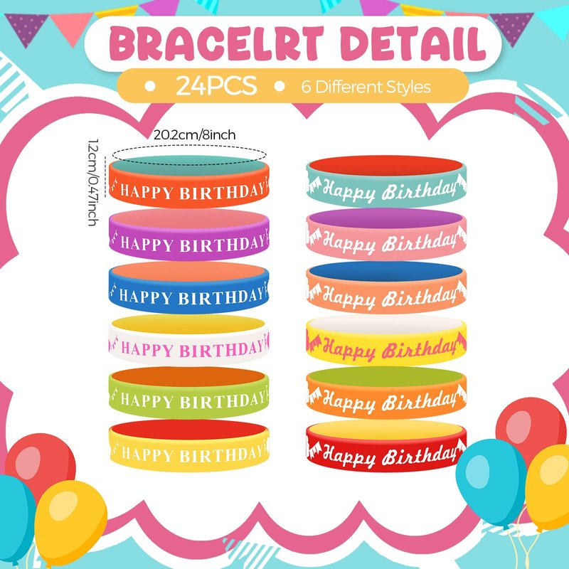 - Appropriate Size: the birthday pencils for students are easy to hold and carry; The circumference of the silicone bracelets is about 20.2 cm/ 7.95 inches, the width is about 1.2 cm/ 0.5 inches; Elastic bracelets can fit a variety of wrist sizes, suitable for kids and most adults
