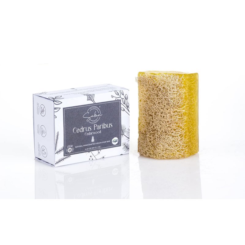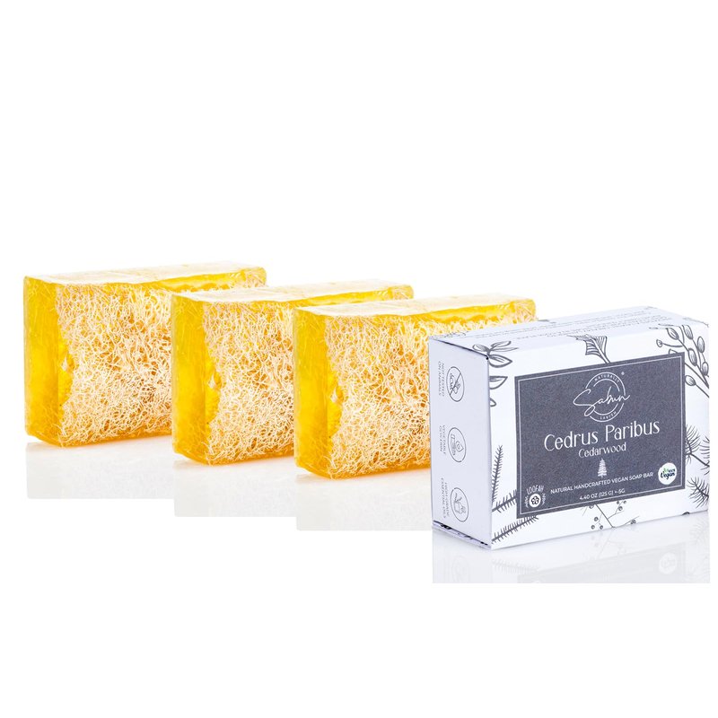 SABUN CO. [3 Pack] Cedarwood Oil with Loofah Soap Bar - Natural Exfoliating Bar Nourishing, Hydrating, Moisturizing Handmade Soap For Face and Body [4.4 oz - 125 gr x 3]