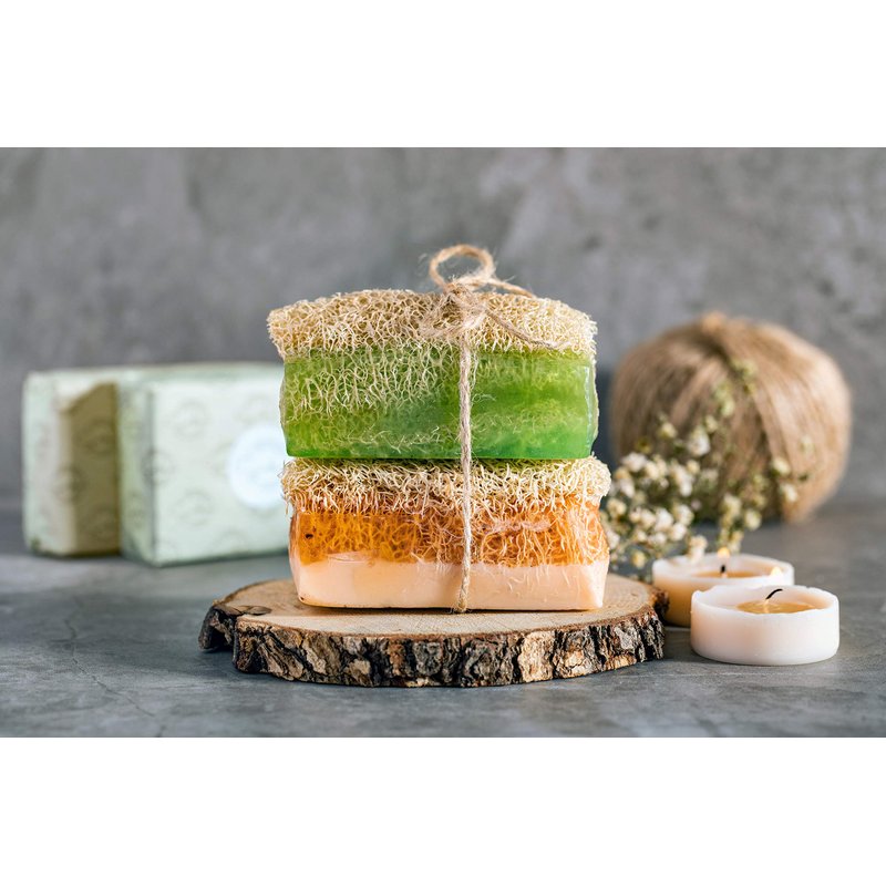 - A bundle of handmade, all-natural loofah soaps