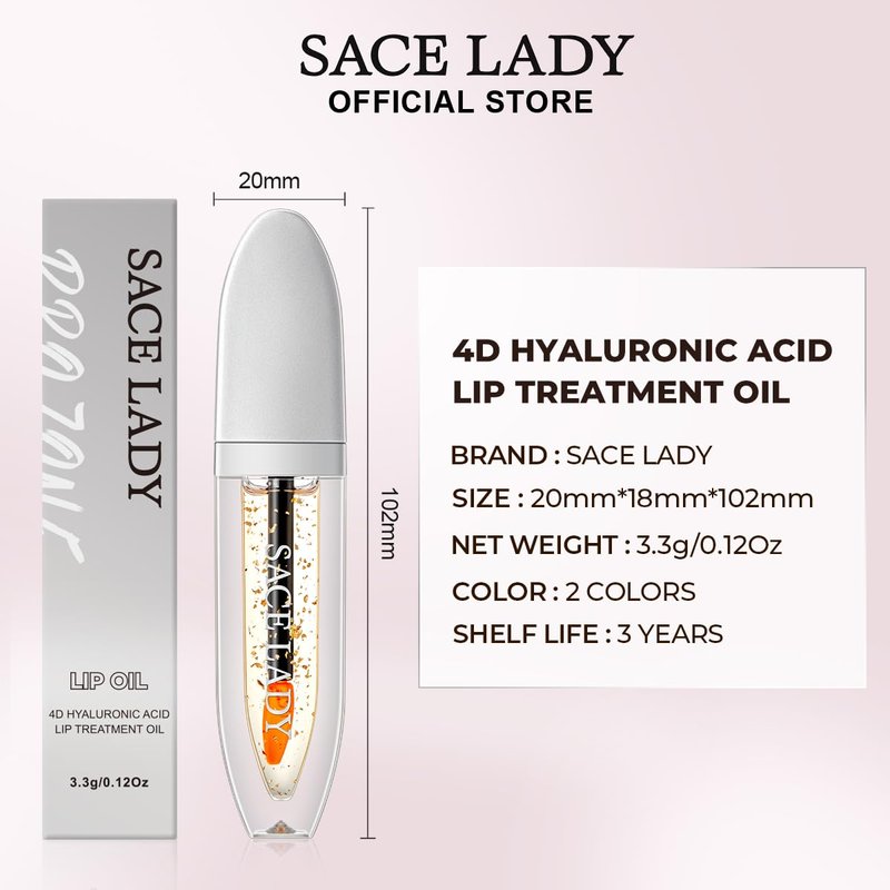 Achieve luscious, hydrated lips with the Sace Lady 4D Hyaluronic Acid Lip Treatment Oil. This tinted lip serum is a hydration bomb, infusing your lips with nourishing moisture for a plump, youthful appearance. The transfer-proof formula ensures long-lasting color that won't smear or feather. With its ultra-smooth application and glossy finish, this lip treatment oil enhances your natural lip tint while providing intense hydration. Indulge your pout with this luxurious lip care product for a soft, supple, and irresistibly kissable smile. Suitable for all skin types and tones.