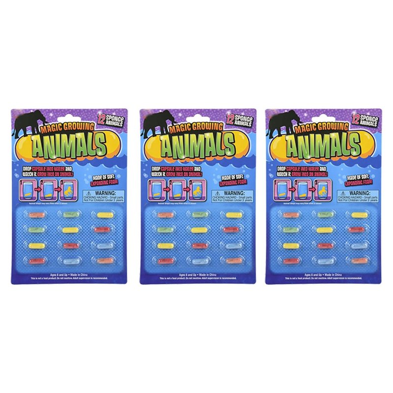 - Each of the 3 packs has 12 colorful capsules that grow into animal shape sponges when submerged in water. 36 ANIMALS TOTAL!