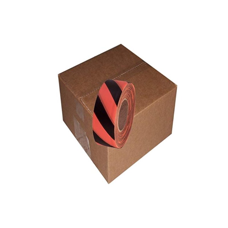 Safety Striped Flagging Tape 1-3/16" Non-Adhesive Plastic Ribbon, Orange/Black (Pack of 12)