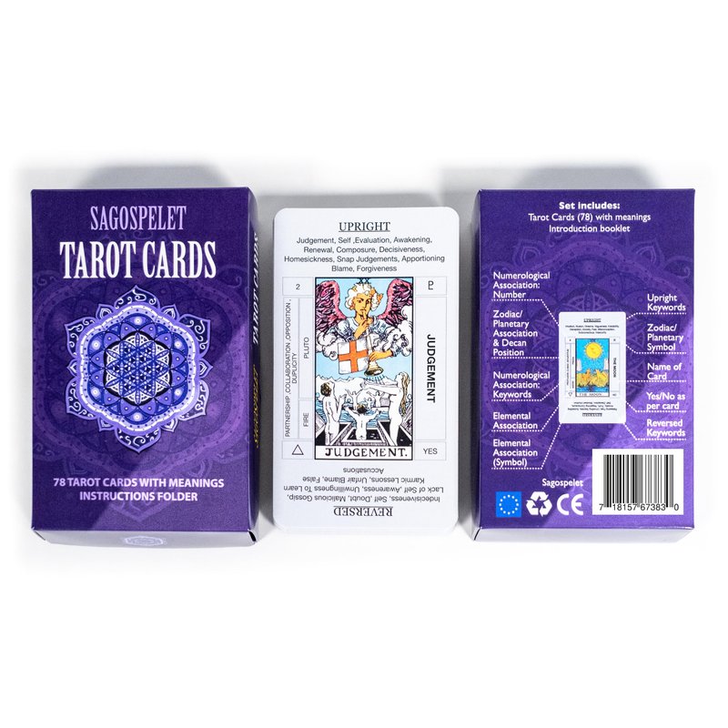 Sagospelet Tarot Cards with Meanings - Beginner Learning Set - Sheet with Common Spreads, Astrological Correspondences, Guidebook Included - Classic Design 78 Card Deck- Original Deck- FSC-Certified