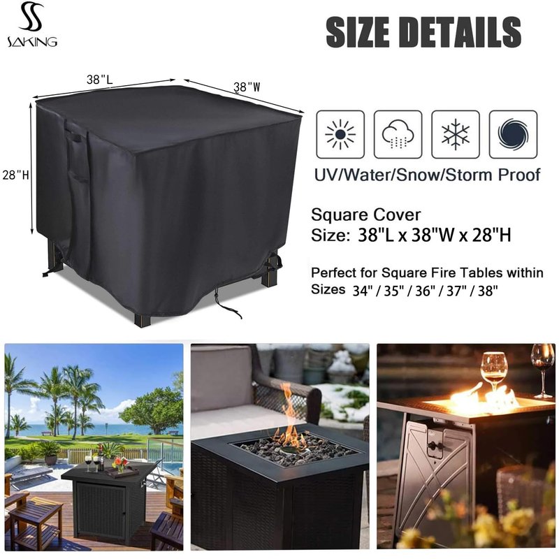 - UNIVERSAL FIT: Outdoor table cover size is 38"L x38"W x 28"H, designed for your 34-38in Square Gas Fire Pit Table.Please check the size of your fire pit before purchase.All you need to do is checking the size details in the product description and purchase the size that fits best.