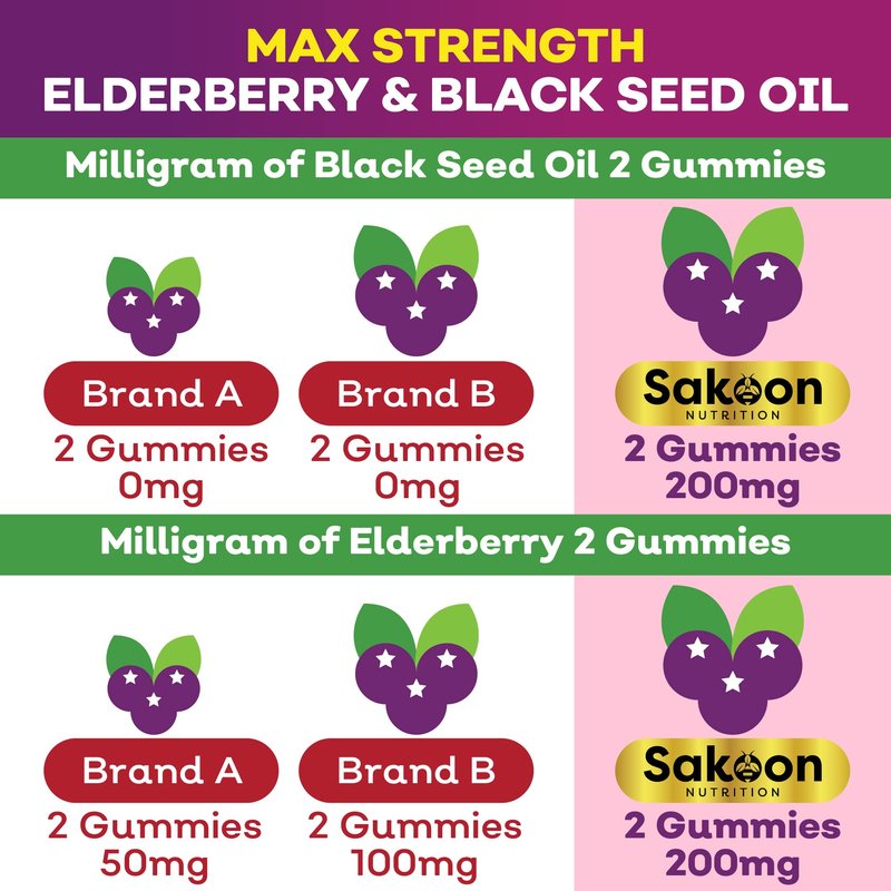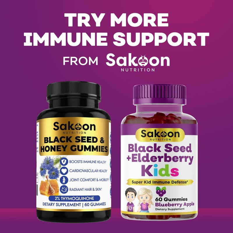 Sakoon nutrition Elderberry & Black Seed Oil Gummies for Kids, Immune Support Gummies, with Vitamin C and Zinc, Delicious Berry Flavor, 60 Gummies