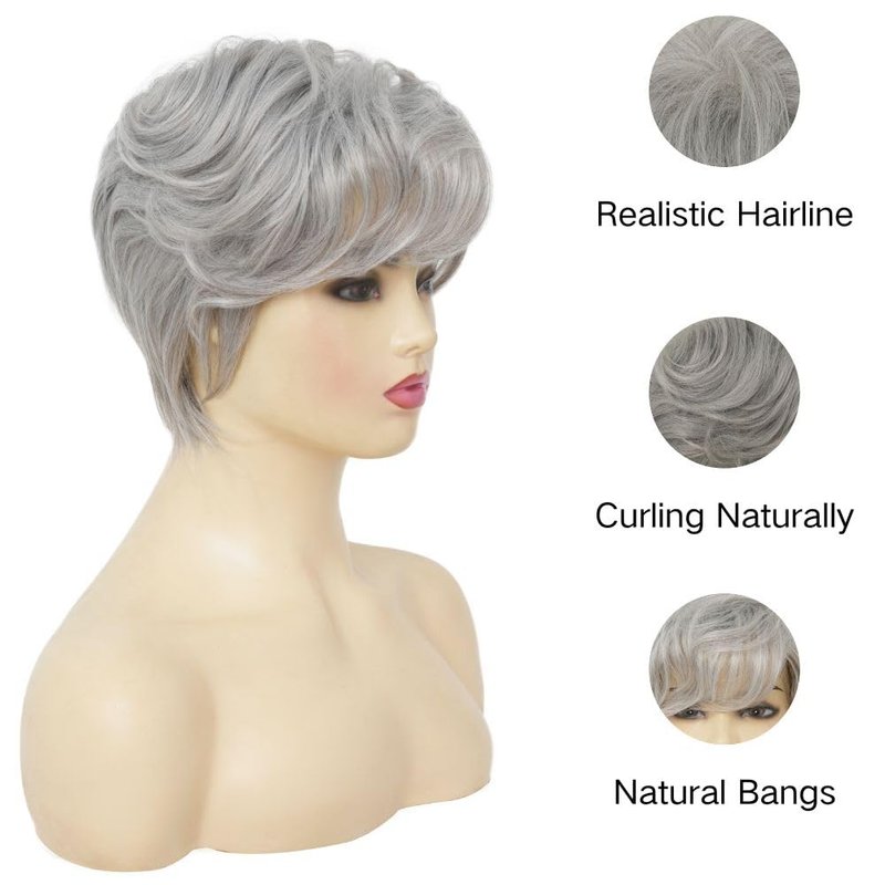 - Style - Grey mixed white curly short wigs with bangs for women. Lightweight and natural, suitable for facial shaping, suitable for various skin tones and most women.
