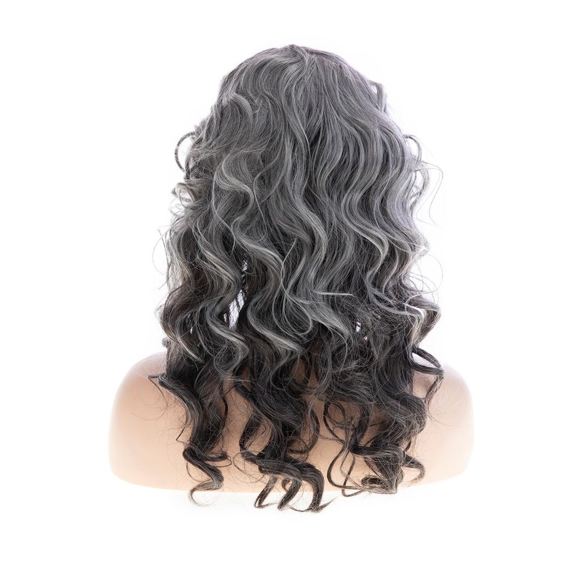 Style: Womens Long Curly Grey Synthetic Hair Wig