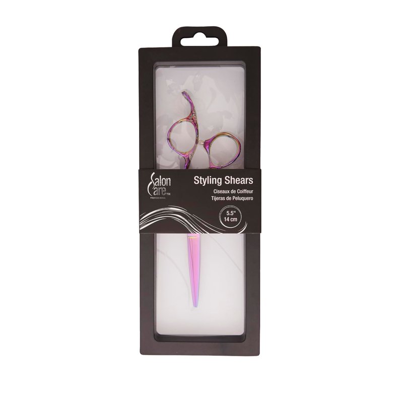 Salon Care Carved Styling Shears are made of stainless steel and produce long-lasting edges for precise smooth cutting action. The lightweight handles with a molded-in finger rest provide a comfortable grip.