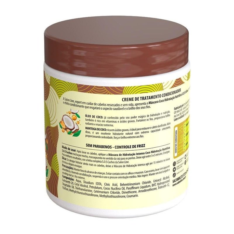Salon Line - Linha SOS Cachos (Oleo de Coco) - Mascara de Hidratacao Intensa 500 Gr - (SOS Curls (Coconut Oil) Collection - Deep Treatment Moisturizing Mask Net 17.63 Oz)