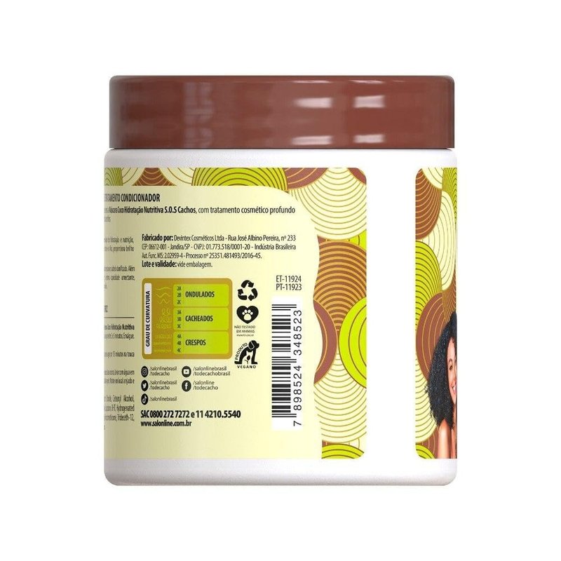 A Mascara de Hidratacao Intensa Coco Tratamento Profundo S.O.S Cachos conta com oleo e manteiga de Coco que, juntos, promovem hidratacao intensa para cachos e crespos. Os ativos tambem agem, principalmente, na recuperacao estrutural dos fios, deixando-os mais saudaveis, nutridos, hidratados, controlados, brilhantes e fortes.