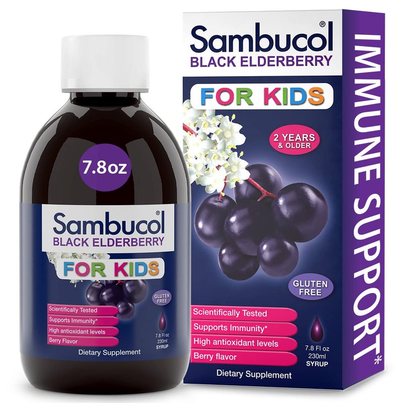 Sambucol Black Elderberry Syrup for Kids- Kids Elderberry Syrup, Added Vitamin C, Black Elderberry Syrup for Kids, Sambucus Elderberry Kids Syrup For Immune Support, Delicious Berry Taste- 7.8 Fl Oz