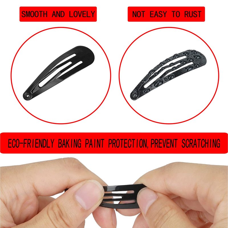 - Quality Material Selection:Theseblack snap bend hair clip are made ofhigh-quality metal with high elasticity, the surface is well-polished which gives a charming metallic luster. Rust resistant and no-faded, durable and not easy to deform. Can be used for a long time.